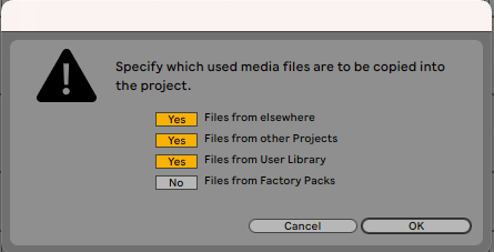 Following these steps will ensure that every file you want in your Ableton Set is there.